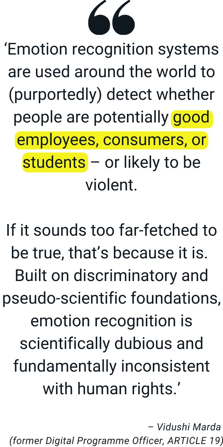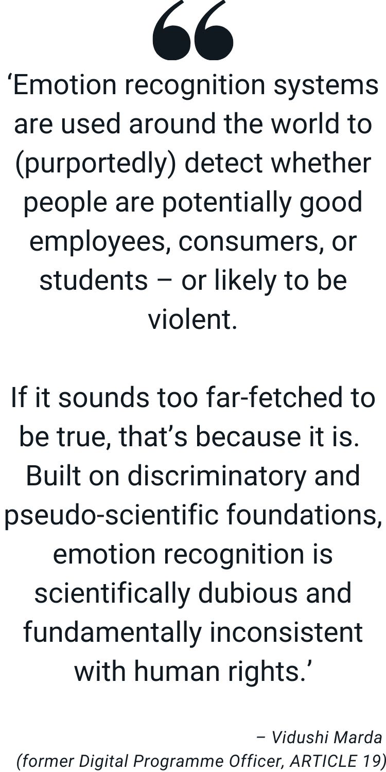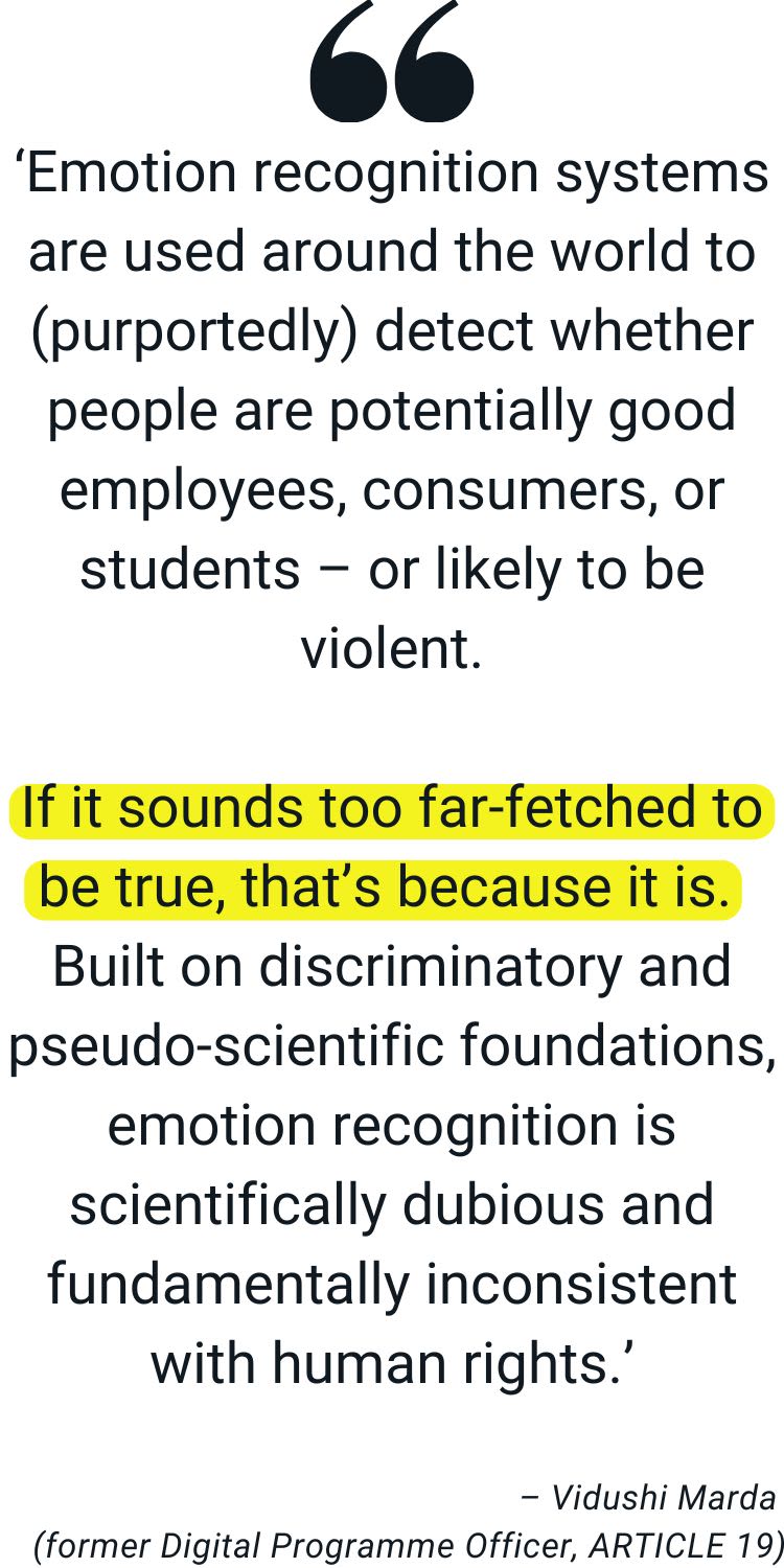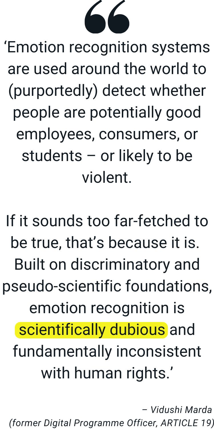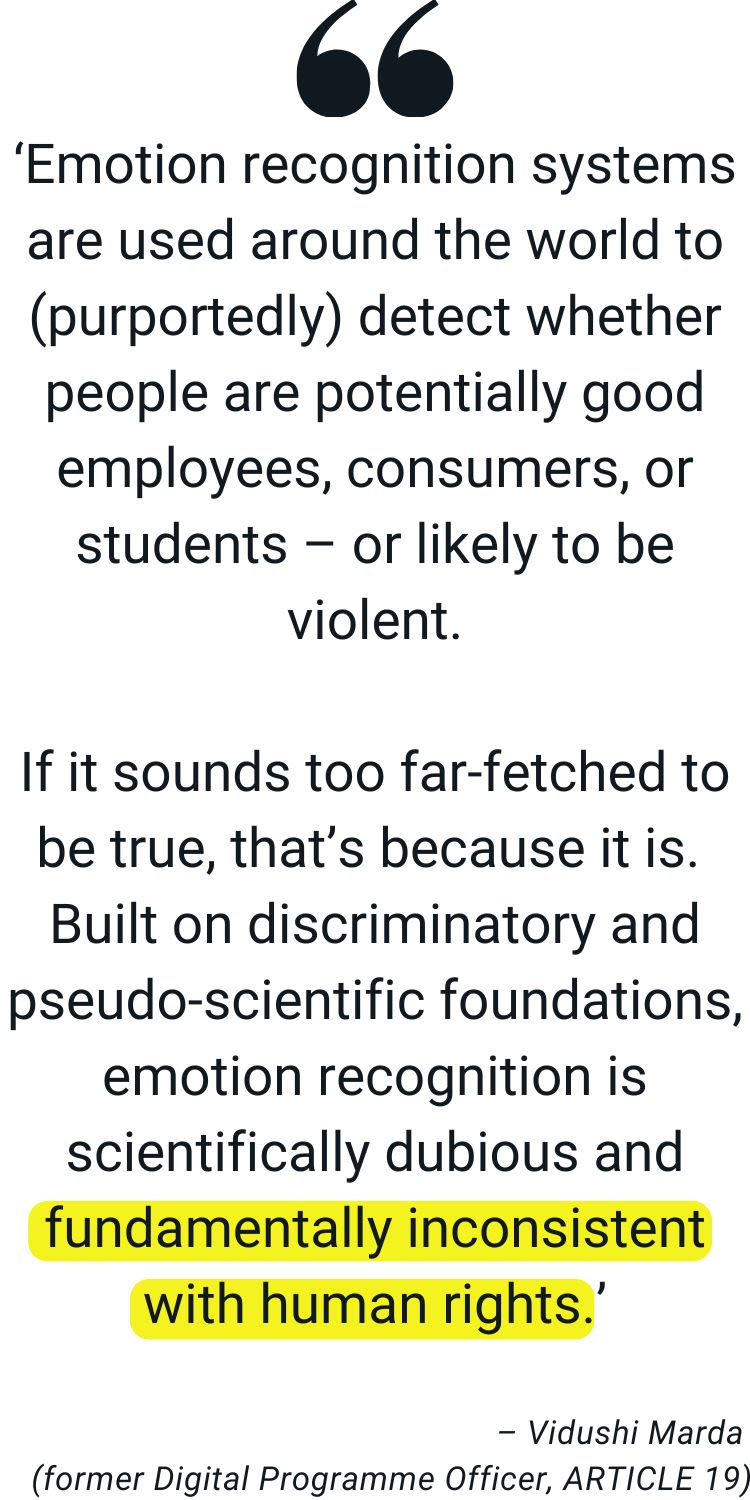 As ever, these threats disproportionately affect marginalised groups – from the anglocentrism of large language models to the eugenics-based pseudoscience of emotion recognition technology.