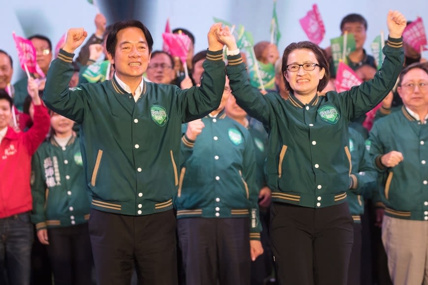 The Democratic Progressive Party's Lai Ching-te (aka William Lai) and running mate Hsiao Bi-Khim during a campaign rally in Taiwan, 3 December 2023. (Shutterstock/jamesonwu1972)